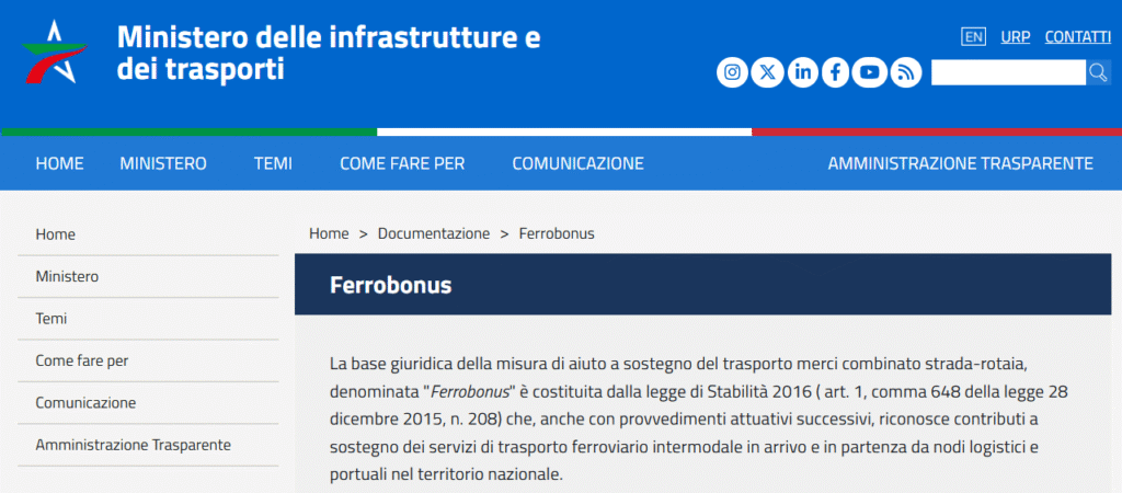The full call for applications and the required forms are available on the website of the Italian Ministry of Infrastructure and Transport, in the dedicated section: https://www.mit.gov.it/documentazione/ferrobonus